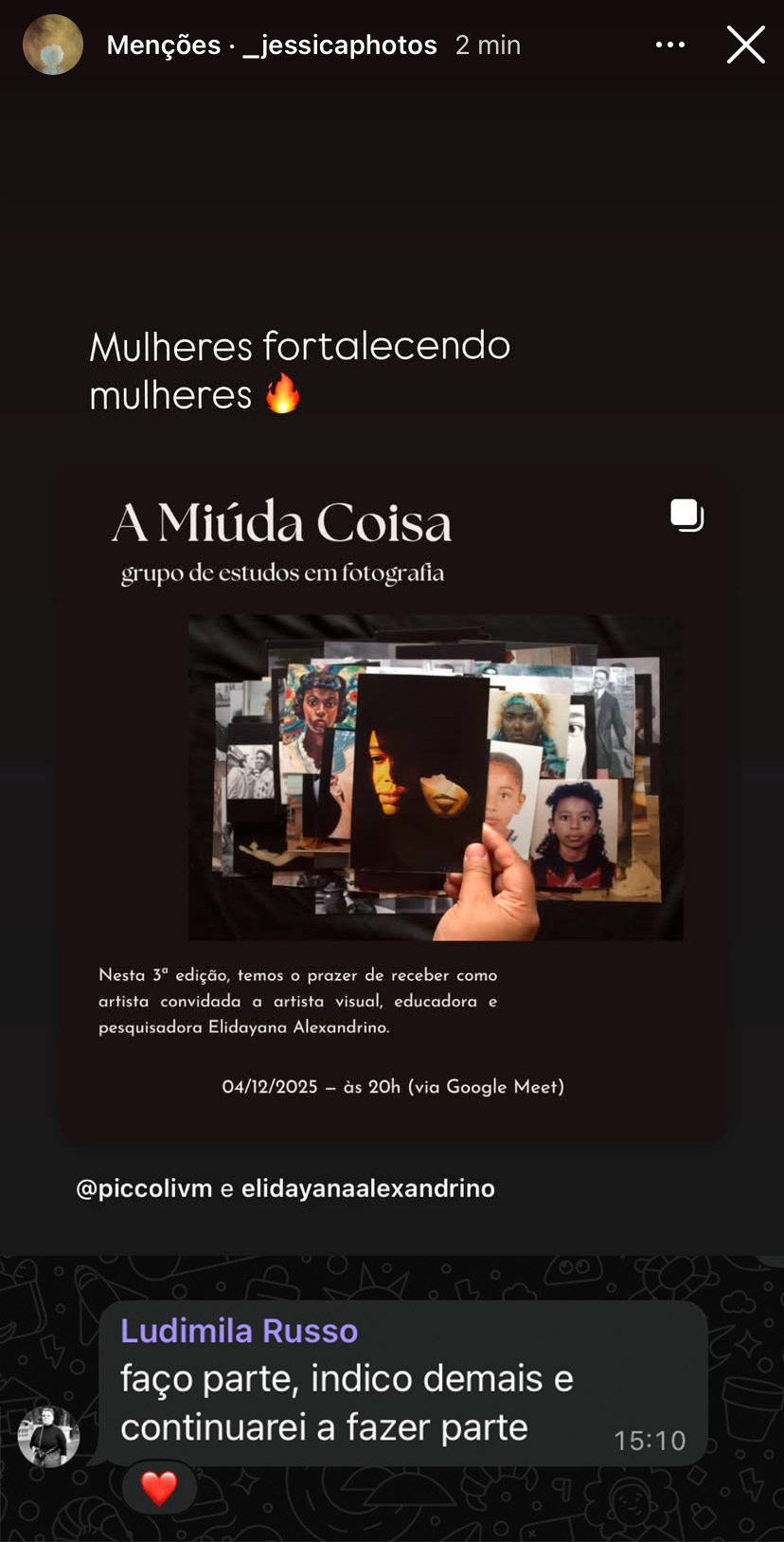 - Criar um espaço de acolhimento, escuta e fortalecimento entre fotógrafas;