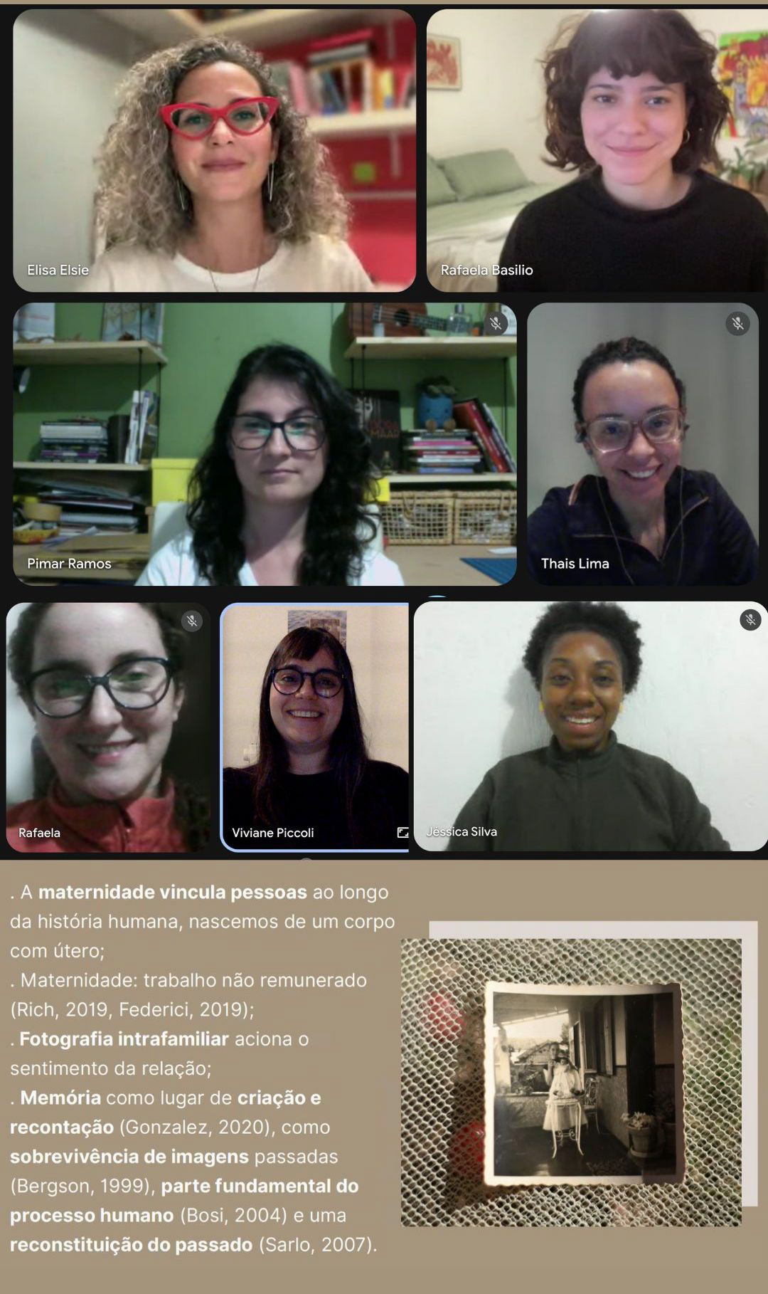 Os encontros são gravados, e os materiais de apoio, referências e registros são disponibilizados às participantes.
